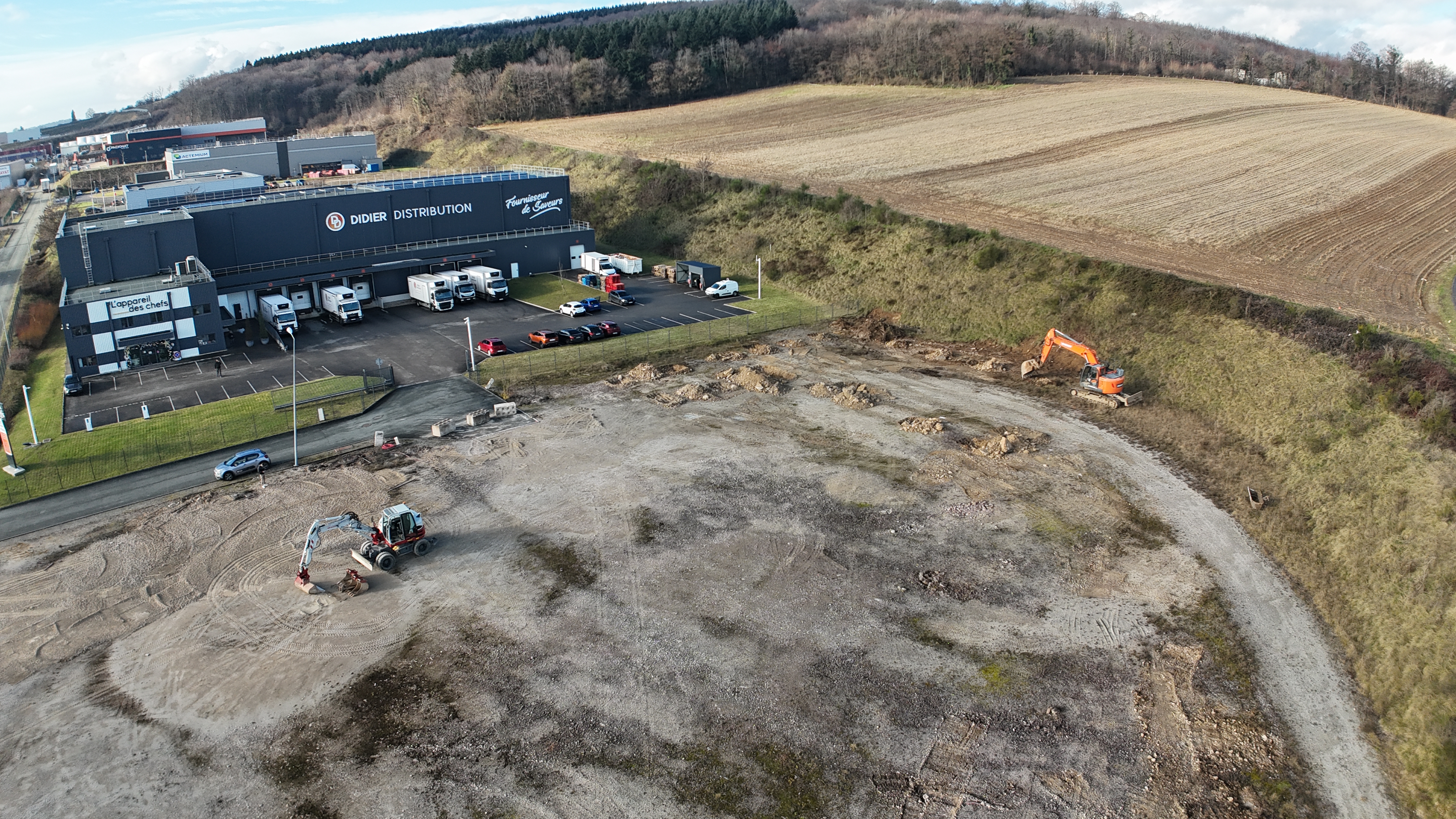 Travaux effectués : Installation de chantier, panneau de chantier, études béton armé, implantation, plateforme, fouilles en rigoles, Fouilles en trous, fondations, ouvrages en béton armé, dallage, élévations, isolation thermique, réseaux enterrés, …