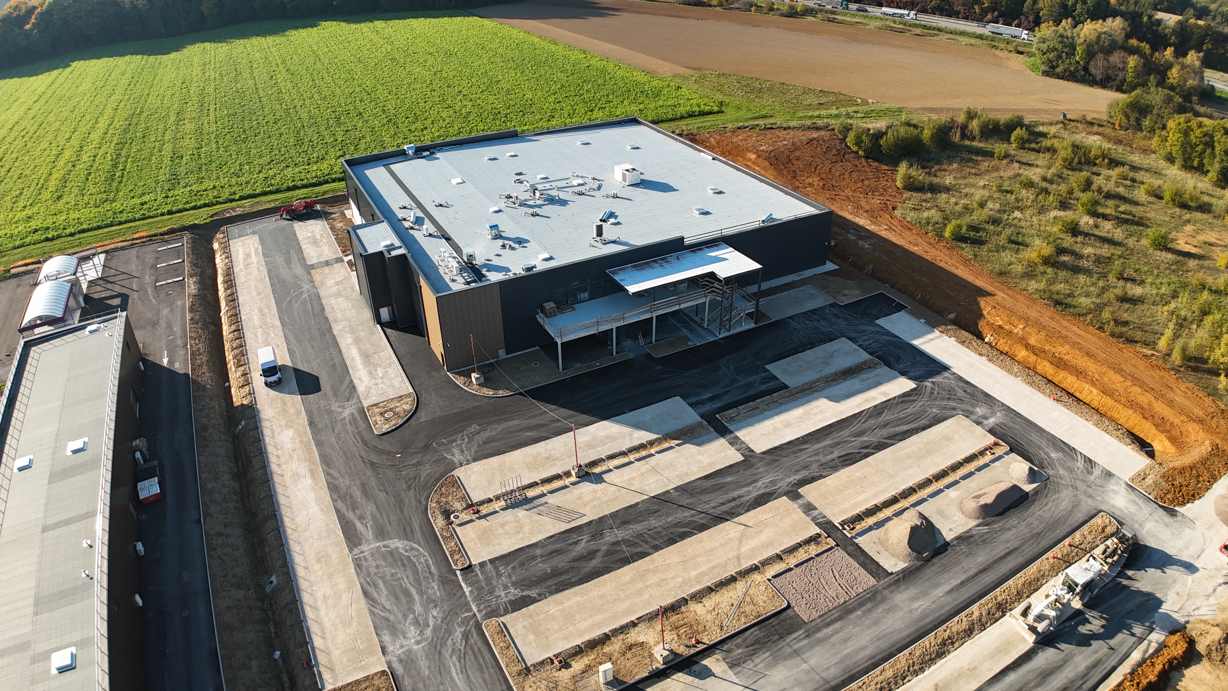 Installation de chantier, panneau de chantier, étude béton armé, implantation, plateforme, Fouille en rigole et fouille en trou, fondations, ouvrages en béton armé, dallage, dalle, maçonnerie, réseaux enterres, …